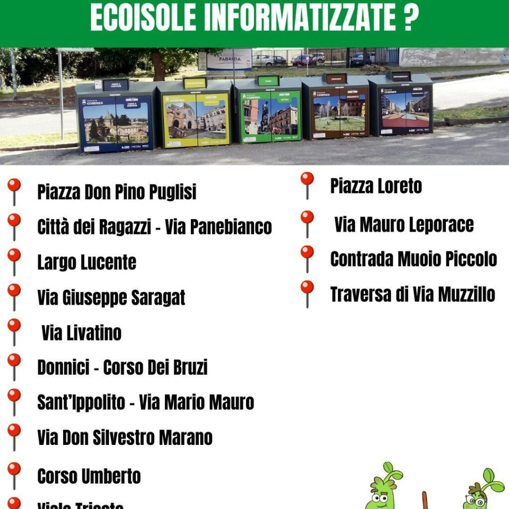 A Cosenza attive le ecoisole intelligenti Soluzioni semplici e all’avanguardia, in grado di realizzare le esigenze dei cittadini di Cosenza. Sono state posizionate 15 ecoisole all’interno dell’area urbana di Cosenza nei seguenti punti: Piazza Don Pino Puglisi, Via Panebianco, Largo Lucente, Via Giuseppe Saragat, Via Livatino, Donnici, Corso Dei Bruzi, Sant’Ippolito, Via Mario Mauro, Via […]