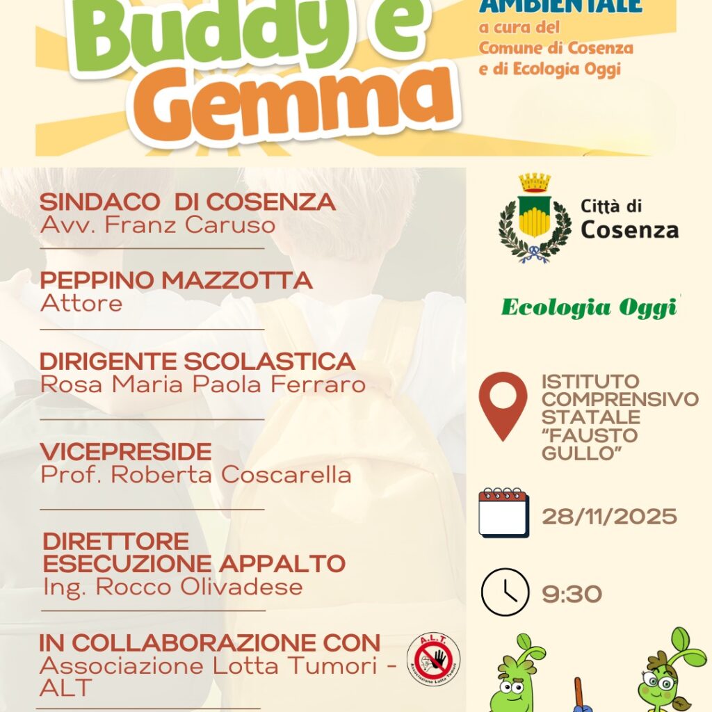 Campagna di sensibilizzazione ecologica 2025 Comune di Cosenza ed Ecologia Oggi. In presenza delle scuole e del testimonial Peppino Mazzotta